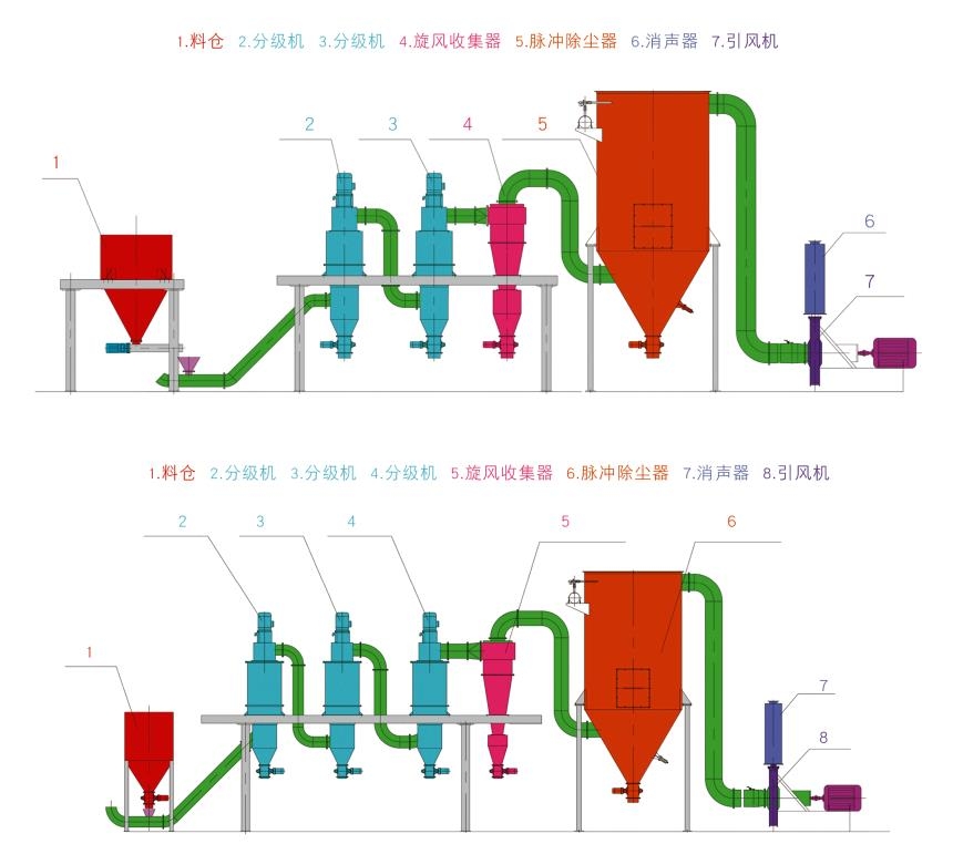 ● 可與球磨機(jī)、振動磨、雷蒙磨等粉磨設(shè)備串聯(lián)使用,組成閉路循環(huán);